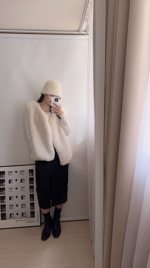 Freesia 1782 海馬毛前長短後長排釦外套(3color)