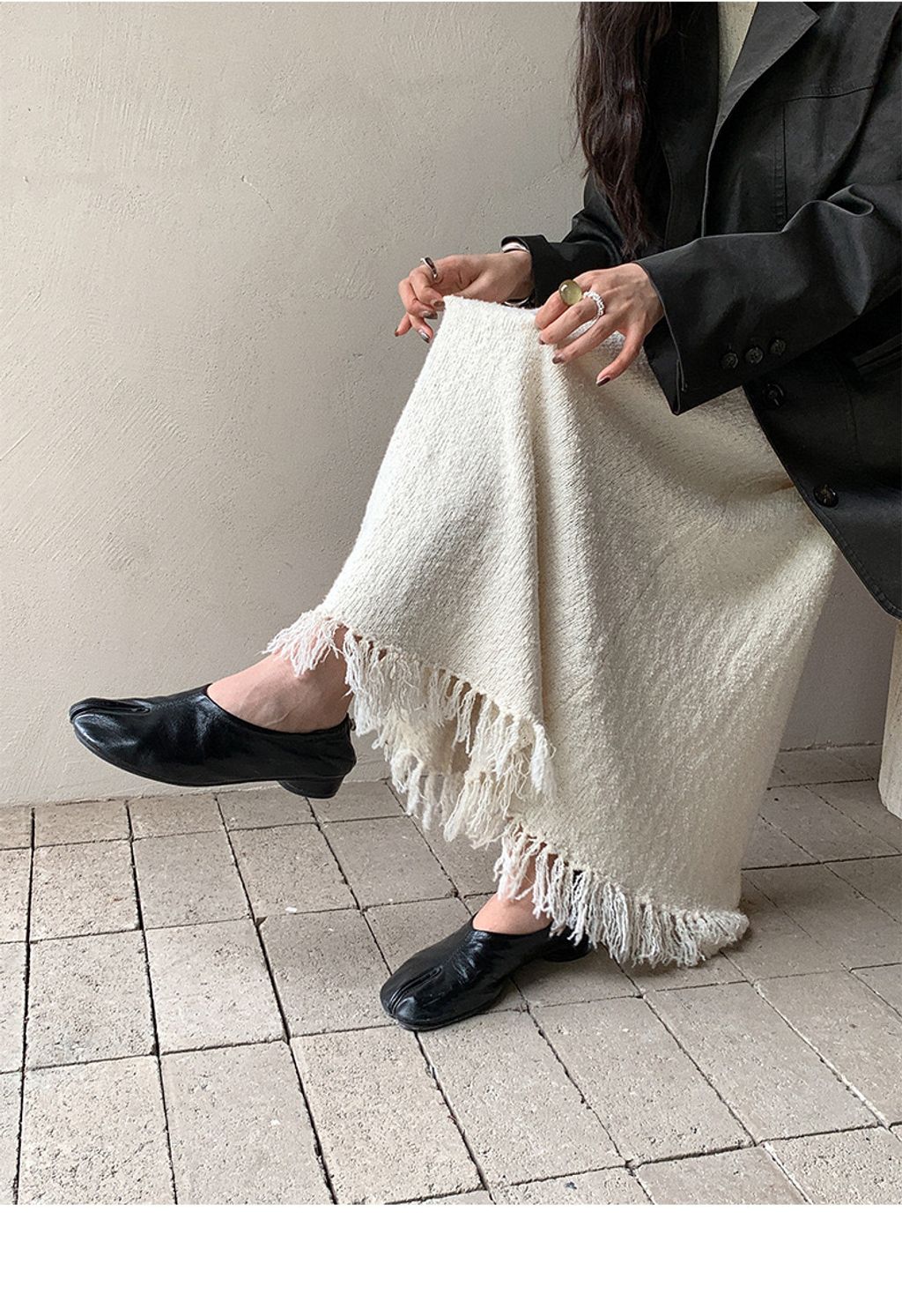 Freesia 6228 高級感重磅微圓領流蘇度假背心連身洋裝(2color)