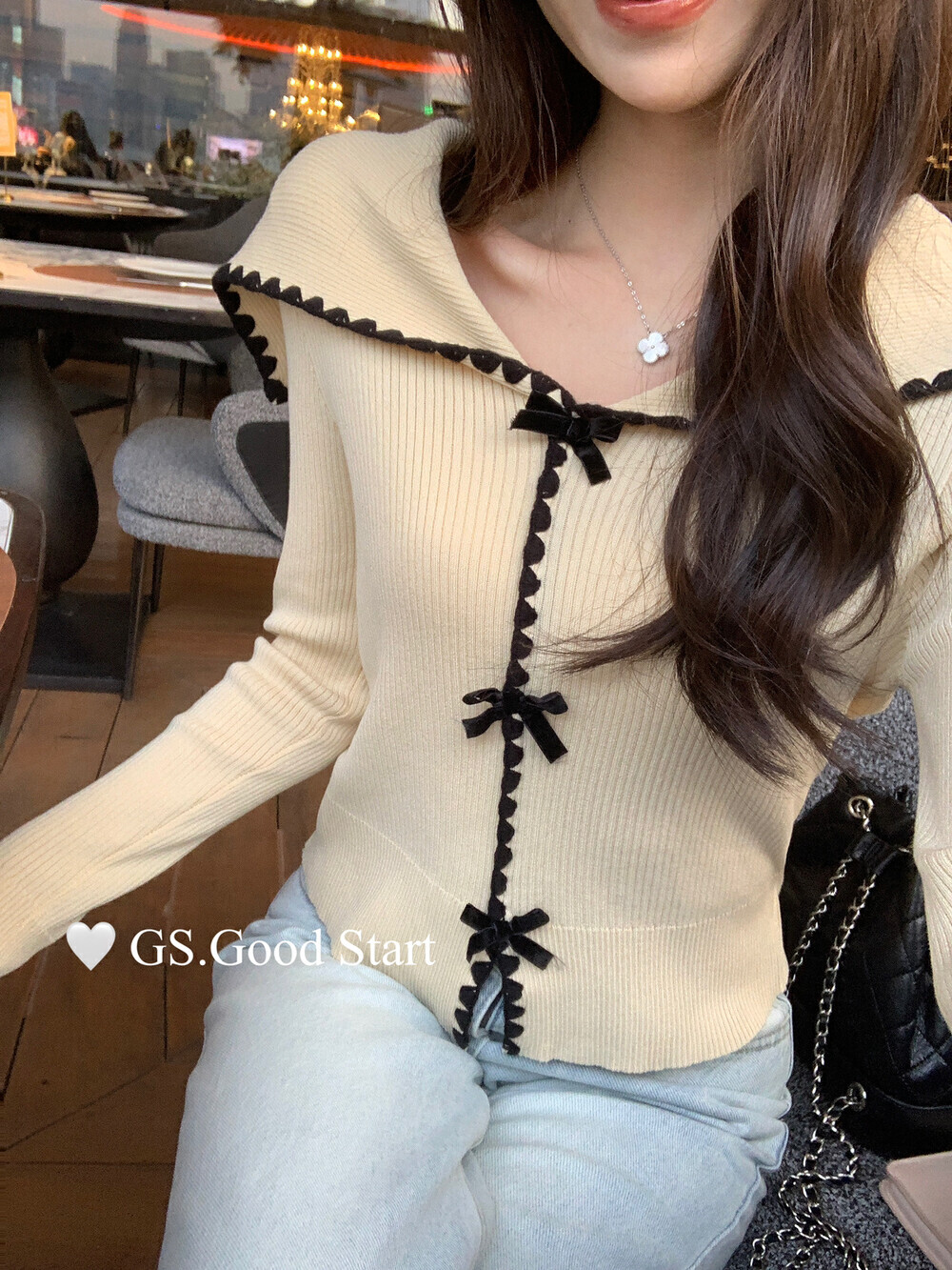 現貨 Freesia 6295 韓系蝴蝶結翻領針織上衣