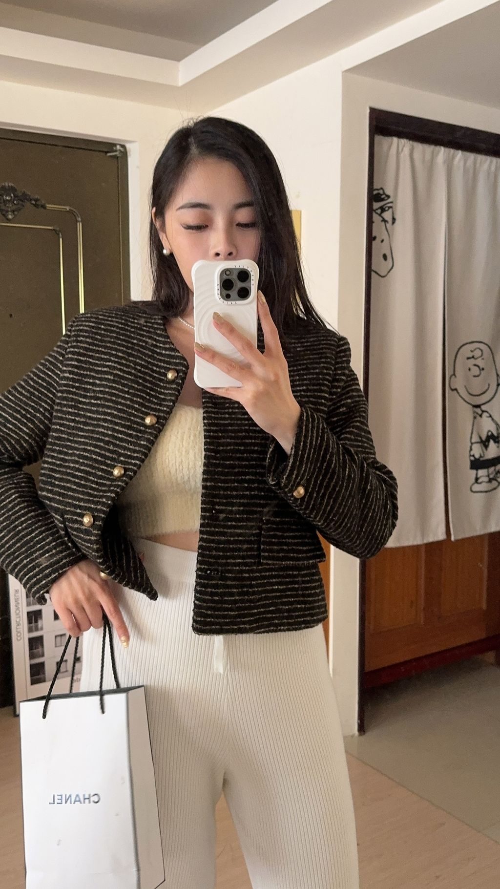 Freesia 6033 老錢風 復古鋪棉條紋小香風外套