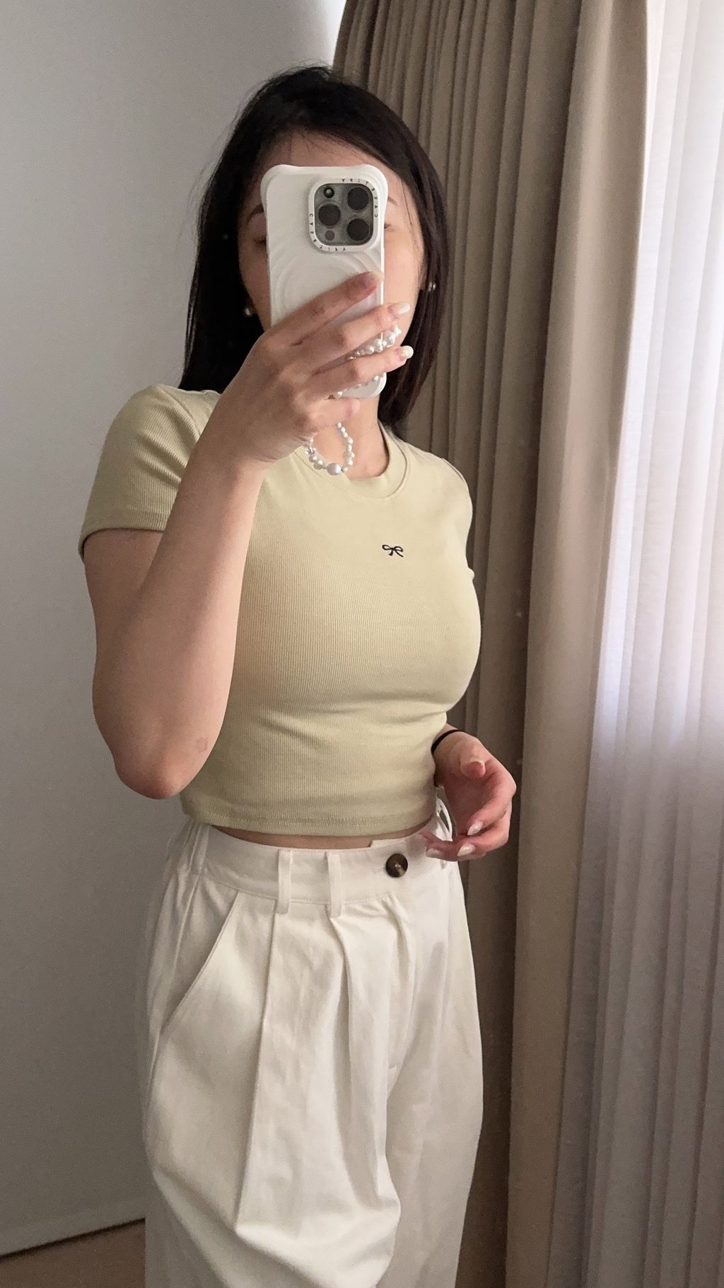 Freesia 992 螺紋蝴蝶結短版上衣(2color)